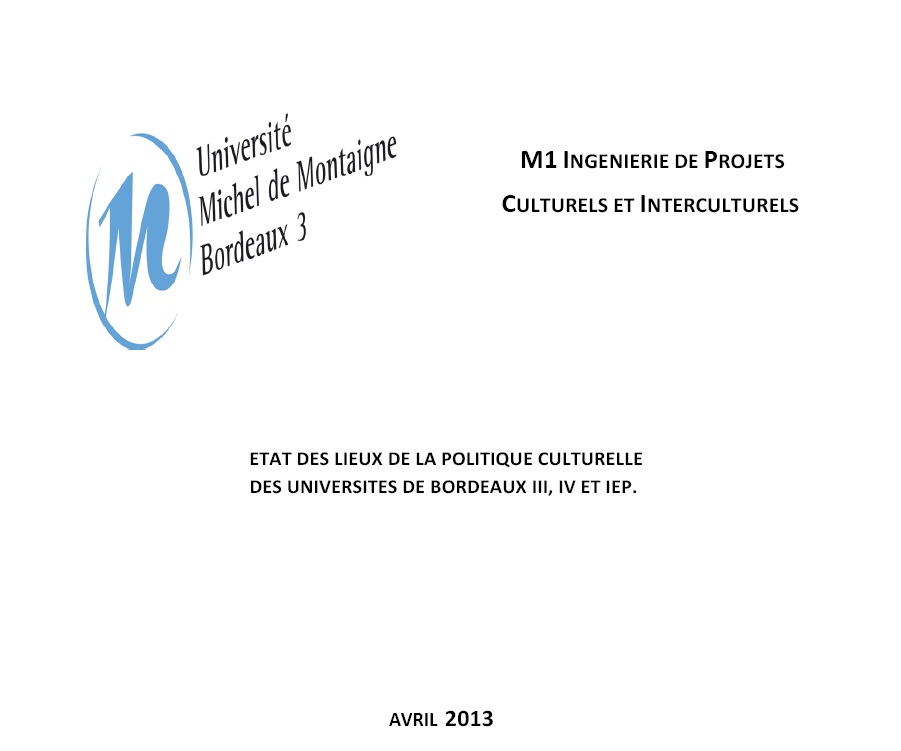 Le Master Ingénierie de Projets Culturels et Interculturels met en œuvre tous les moyens dont elle dispose, pour assurer une information fiable et une mise à jour fiable de ses sites internet. Toutefois, des erreurs ou omissions peuvent survenir. L’internaute devra donc s’assurer de l’exactitude des informations auprès du Master Ingénierie de Projets Culturels et Interculturels, et signaler toutes modifications du site qu’il jugerait utile. Le Master Ingénierie de Projets Culturels et Interculturels n’est en aucun cas responsable de l’utilisation faite de ces informations, et de tout préjudice direct ou indirect pouvant en découler.
