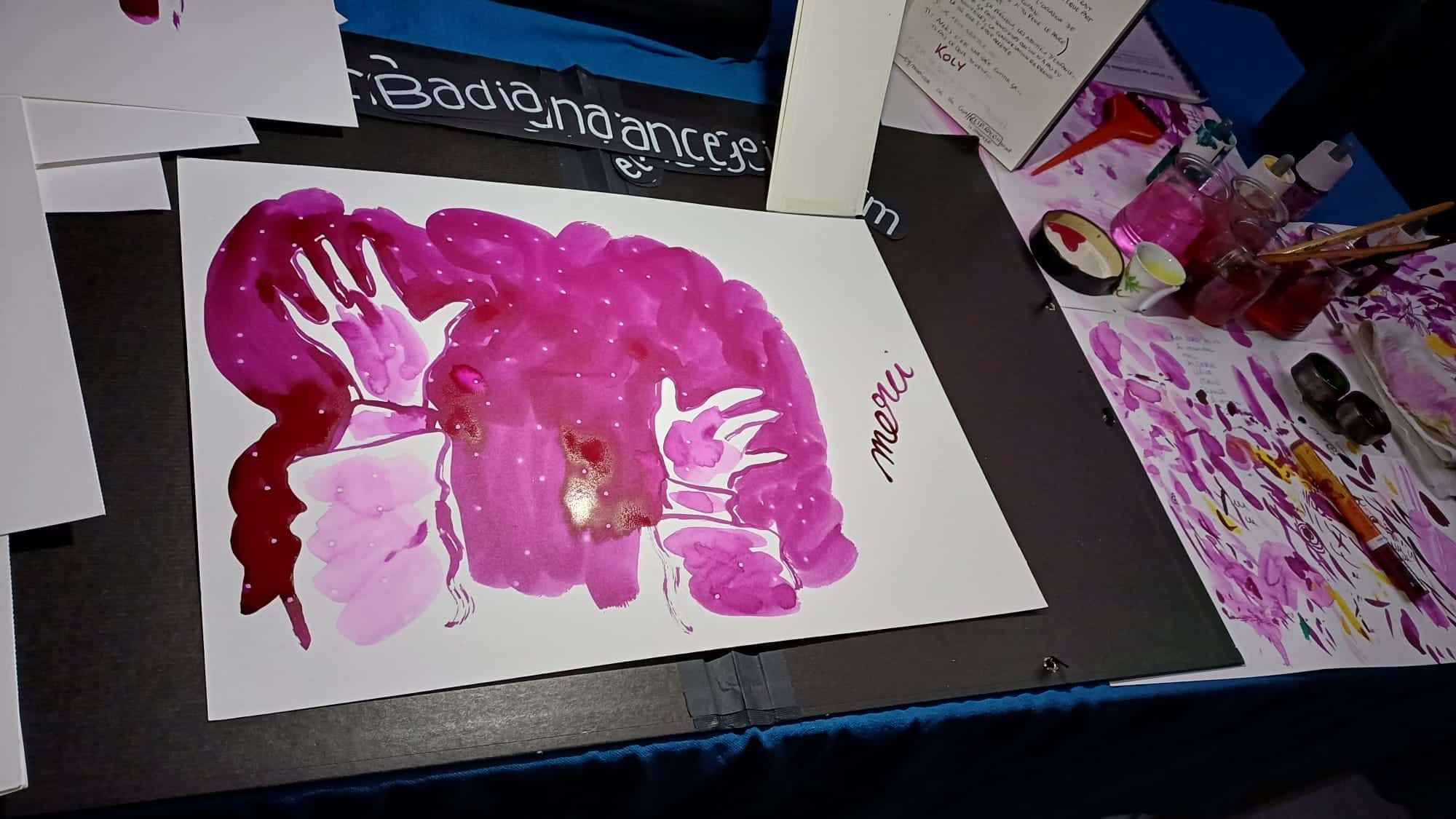 Les récits se succèdent, un·e à un·e, marqués par la tragédie, l’exil, la guerre, l’immigration vers la France. Une femme raconte sa vie dans un camp de réfugié·es en Syrie : enceinte, déjà mère, elle perd son mari. Pourtant, au cœur du camp, elle fonde une école pour permettre aux enfants de poursuivre leurs études, certains allant jusqu’à obtenir des diplômes. Sur la toile, Marion Duclos dessine une femme voilée dominant le camp, le visage brisé comme un puzzle. Puis, geste symbolique, elle retourne ces fragments et les transforme en fleurs : de la cassure naît la vie.